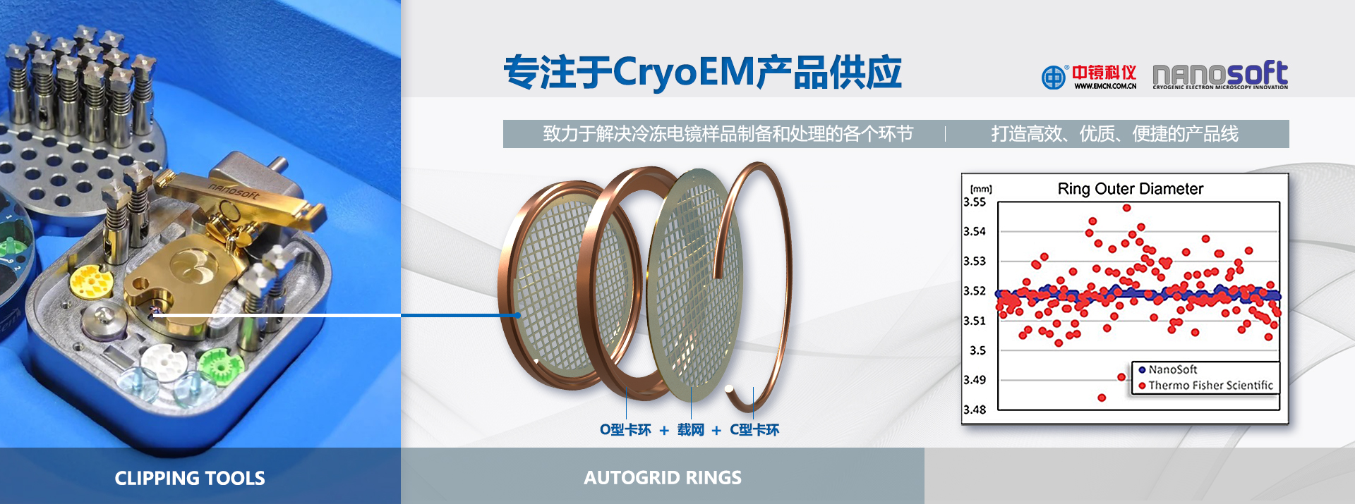 NanoSoft的Autogrid Rings是一種優(yōu)質(zhì)的、變化較小的、功能相當?shù)倪x擇,可用于賽默飛的cryoEMs和自動裝填系統(tǒng)。采用尖端技術(shù)制造,可降低載網(wǎng)的變形。高質(zhì)量的卡環(huán)與賽默飛TFS版本的同款產(chǎn)品相兼容。